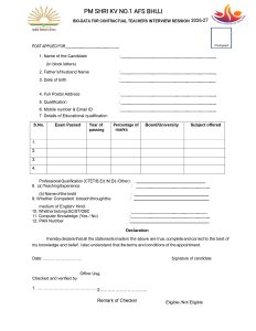 BIO DATA FORM FOR CONTRACTUAL TEACHERS INTERVIEW 2026-27